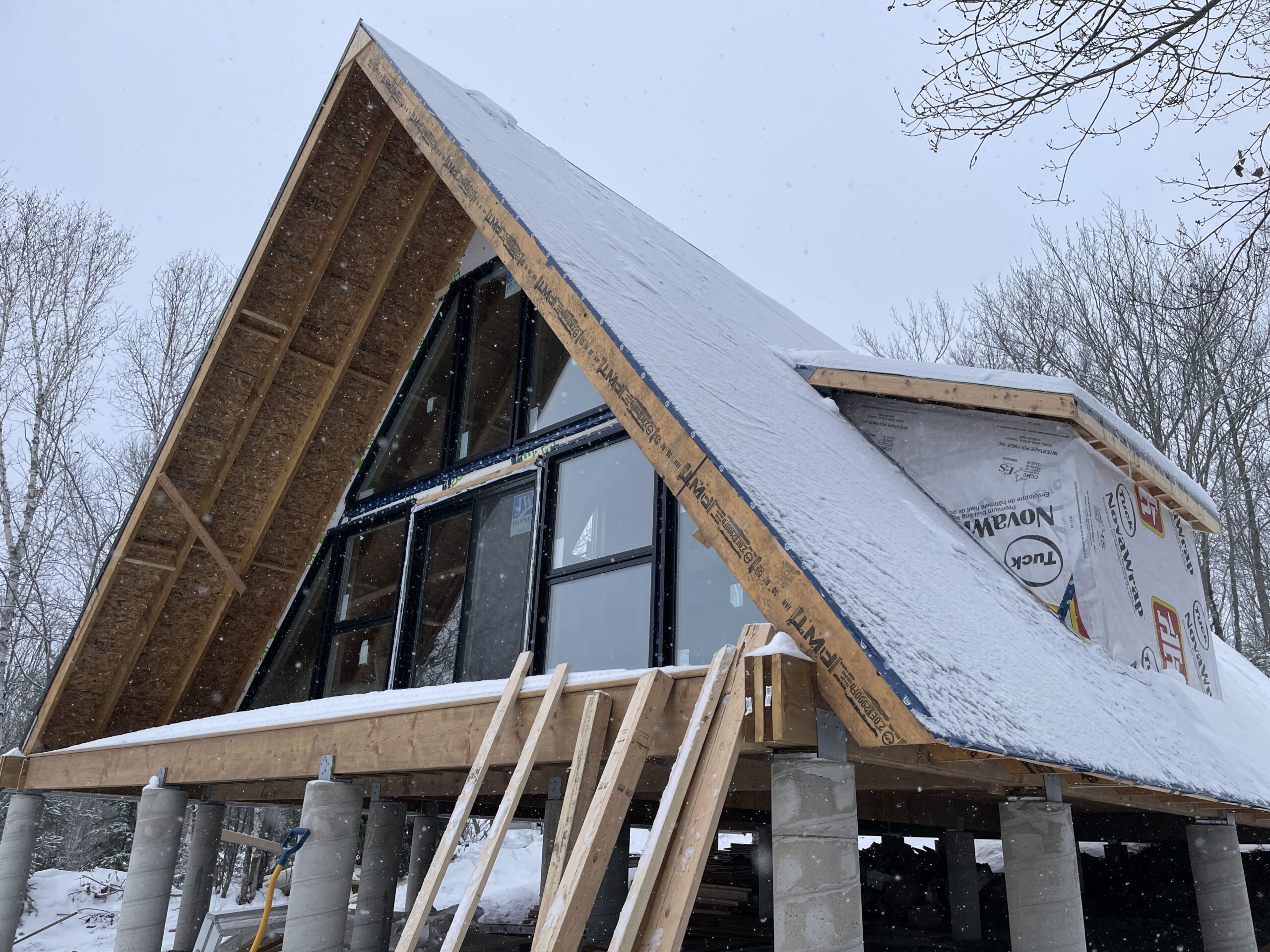 This A-frame house design optimizes the small footprint, while maximizing solar orientation and views on a steep rural site.